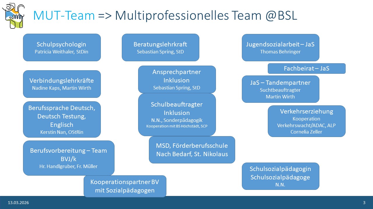 Jugendsozialarbeiter, Beratungslehrkraft, Schulpsychologin (Kontakt unten)